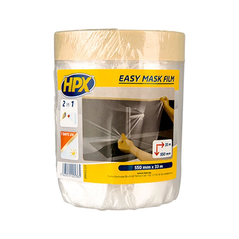 Film transparent avec ruban de masquage 60°C. Pour recouvrir et masquer de grandes surfaces (meubles, murs, etc.).