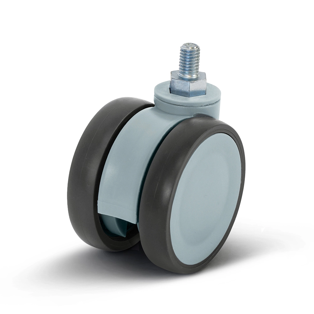 Roulette double filetée grise pour meubles - 75mm - 80kg
