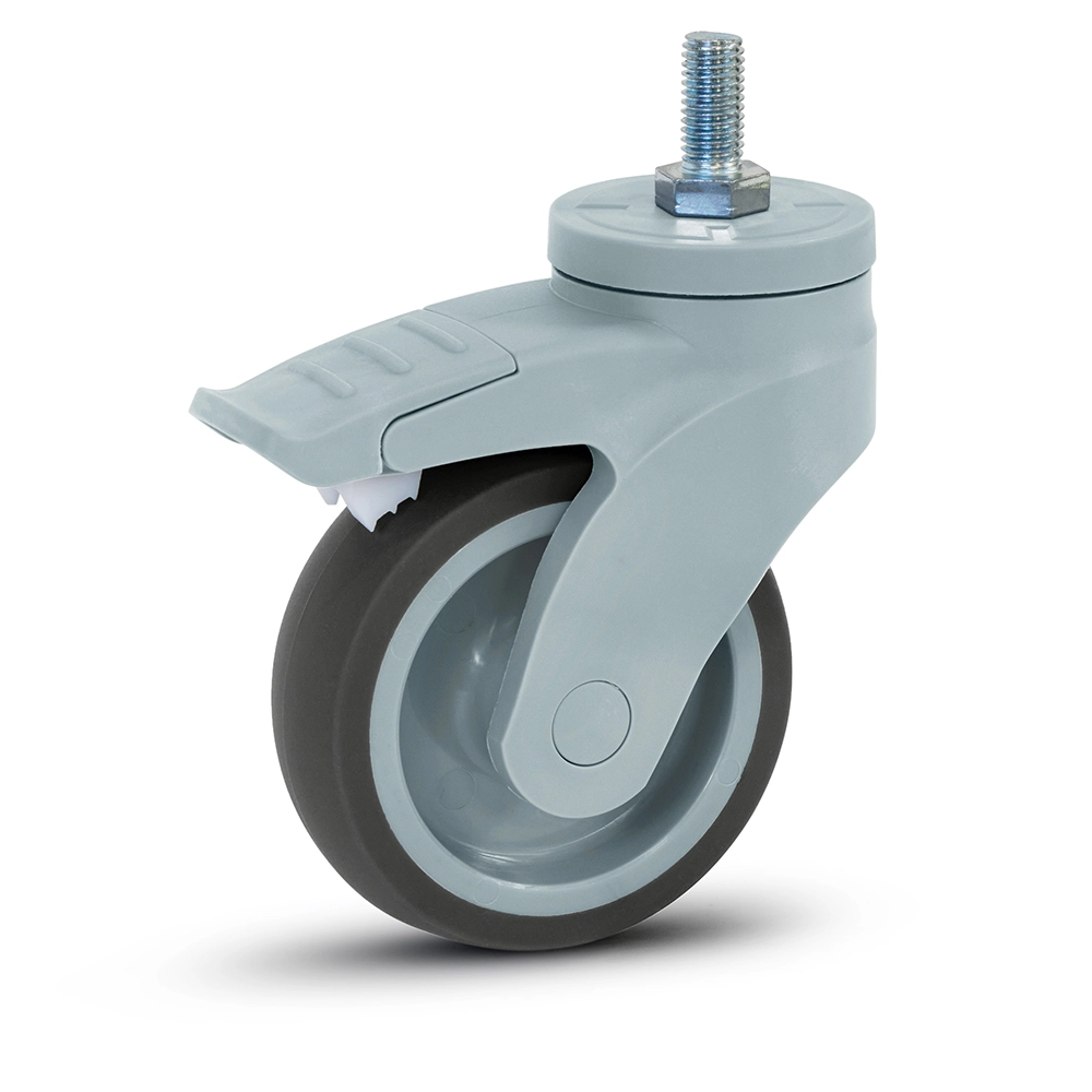 Roulette pivotante en plastique gris freinée avec filetage - 100mm - 100kg
