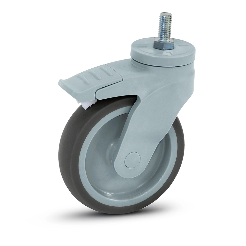 Roulette pivotante en plastique gris freinée avec filetage - 125mm - 100kg
