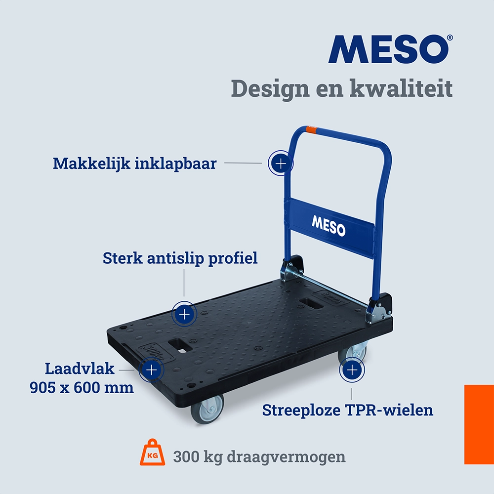 Le chariot à plate-forme pliable MESO est le choix idéal pour déplacer des marchandises lourdes sans effort. Avec une capacité de charge de 300 kg et un cadre métallique robuste, ce chariot de transport est idéal pour une utilisation professionnelle et privée dans les entrepôts, les ateliers, les bureaux et les environnements logistiques.