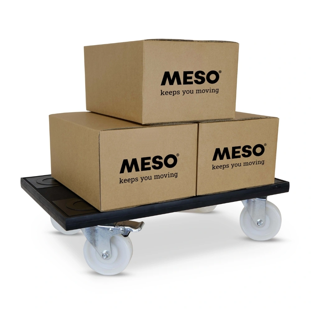 Rouleau pour meubles avec roues en nylon résistant à l'usure, deux roulettes pivotantes freinées, 580 mm x 350 mm et une capacité de charge de 400 kg.