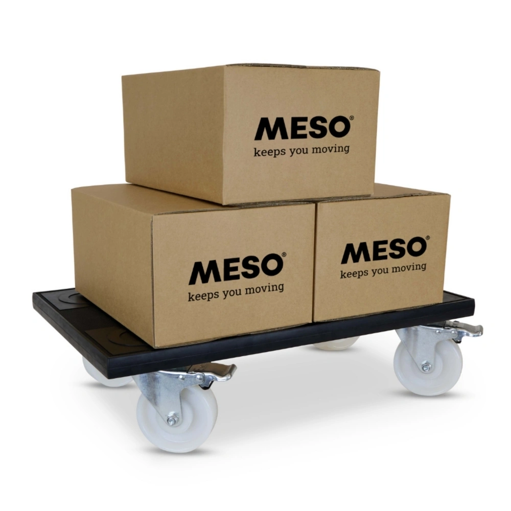 Rouleau pour meubles avec roues en nylon résistant à l'usure, quatre roulettes pivotantes freinées, 580 mm x 350 mm et une capacité de charge de 400 kg.