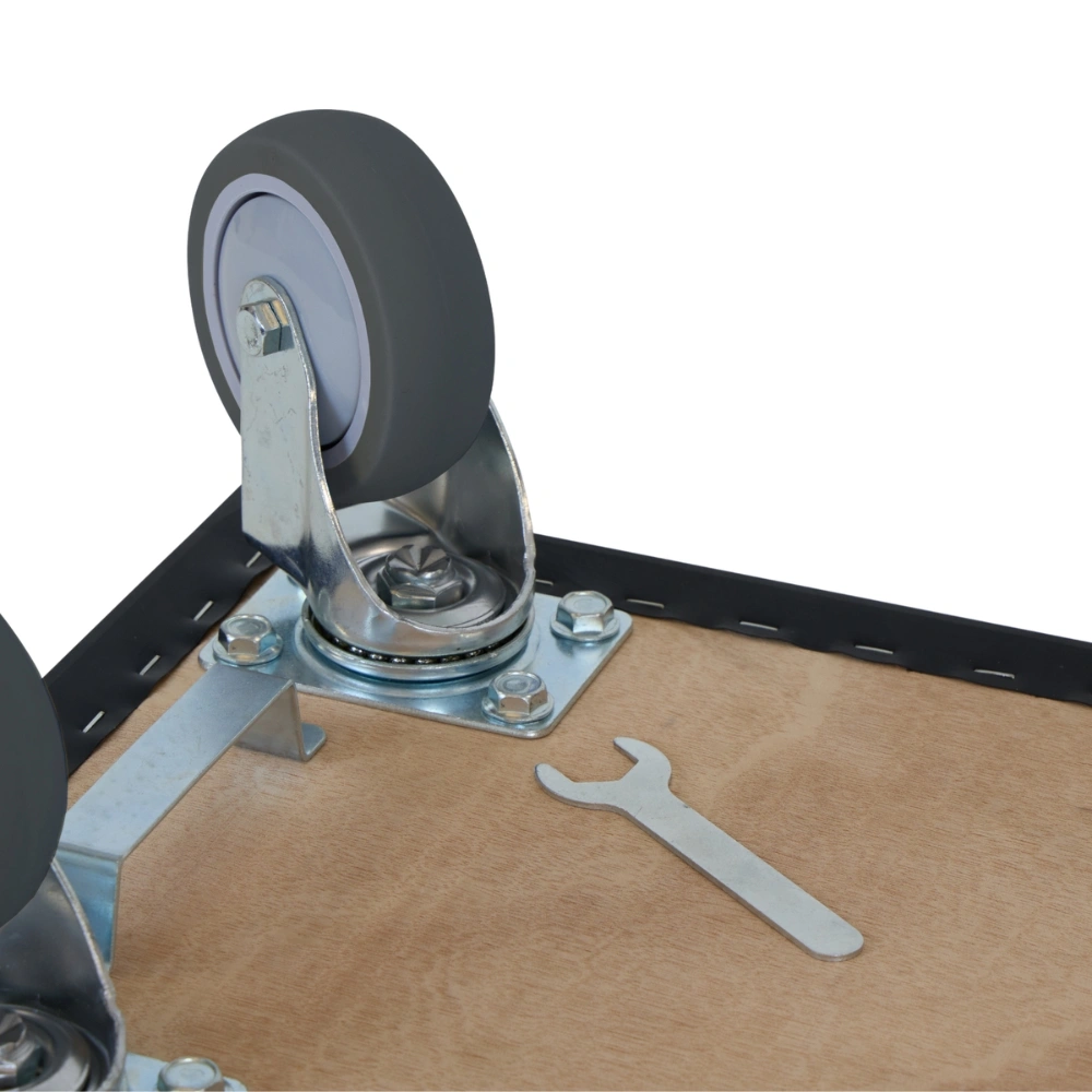 La base en bois robuste et les roulettes souples garantissent une utilisation confortable. Parfait pour ceux qui ont régulièrement besoin de déplacer des objets lourds avec un minimum d'effort.