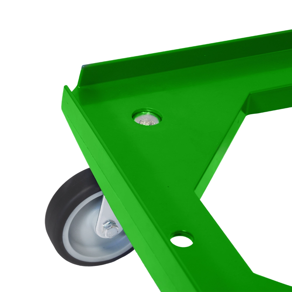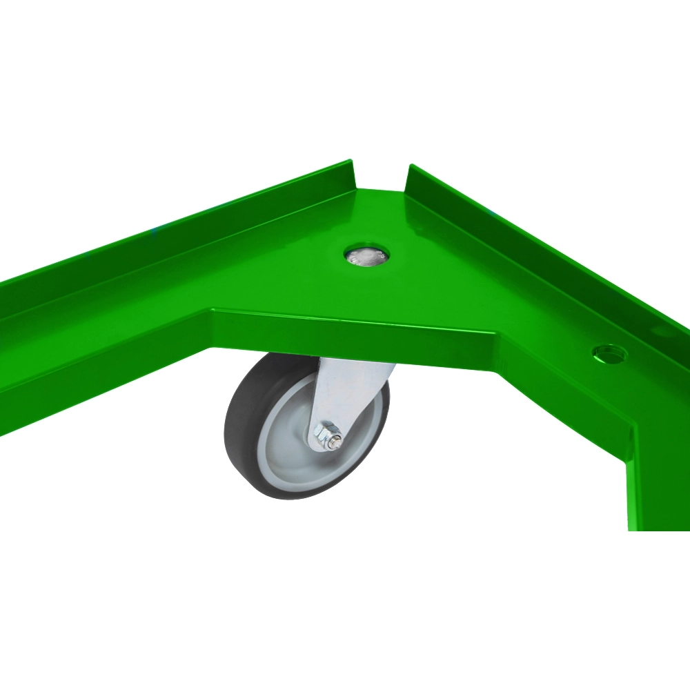 Chariot à roulettes vert avec une capacité de charge de 375 kg et quatre roulettes TPR pour une mobilité en douceur.