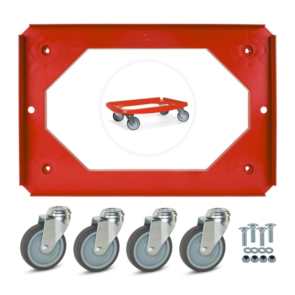 MESO - Chariot à roulettes - Plate-forme à roulettes ABS - Rouge - Surface de chargement 600 x 400mm - 4 roulettes pivotantes TPR - 100mm - 250kg