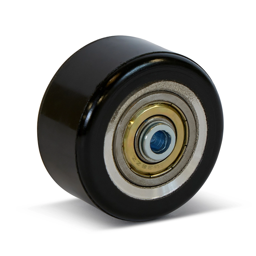 Roue compacte en PU de 50 mm, finition noire, avec une capacité de charge maximale de 120 kg.