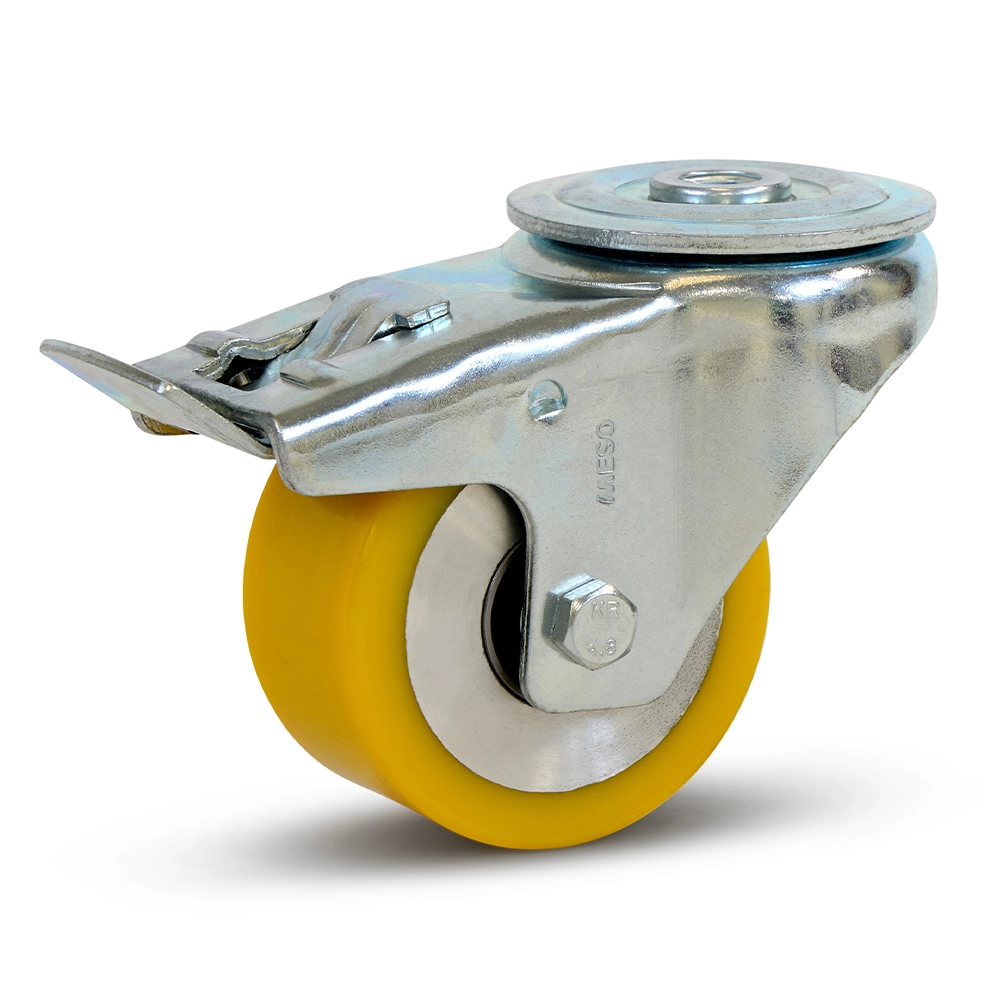 Roulette pivotante en PU freinée avec trou de boulon - 80mm - 300kg