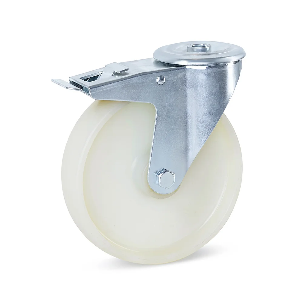 Roulette pivotante en nylon freinée avec trou central - 200mm - 400kg