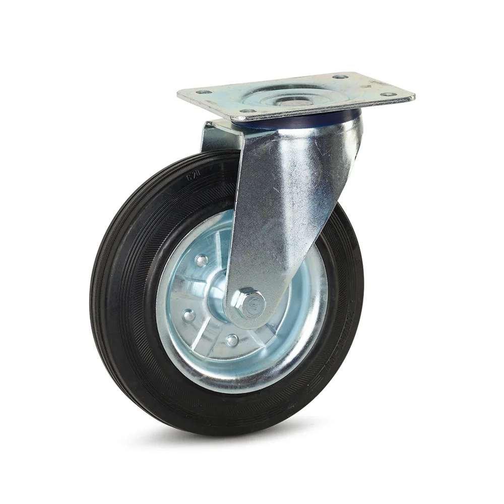 Roulette pivotante en caoutchouc avec plateau supérieur - 200mm - 250kg