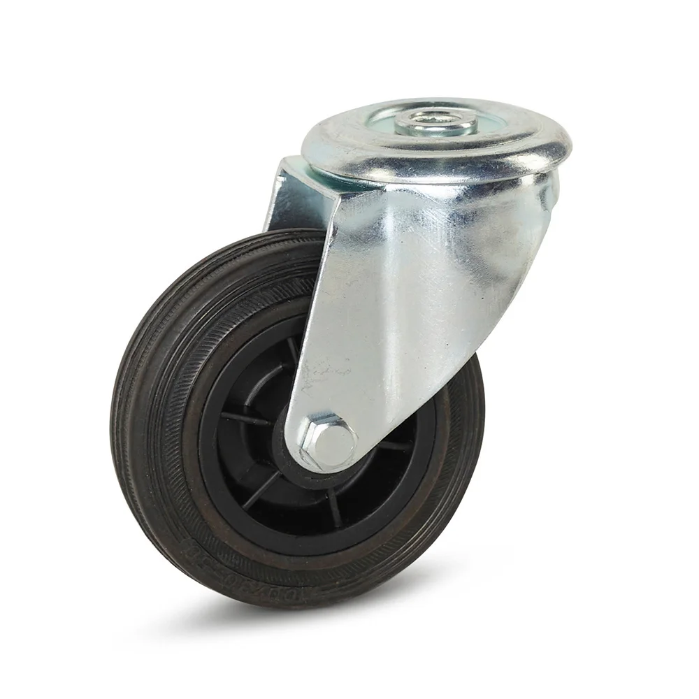 Roulette pivotante en caoutchouc avec trou central - 100mm - 100kg