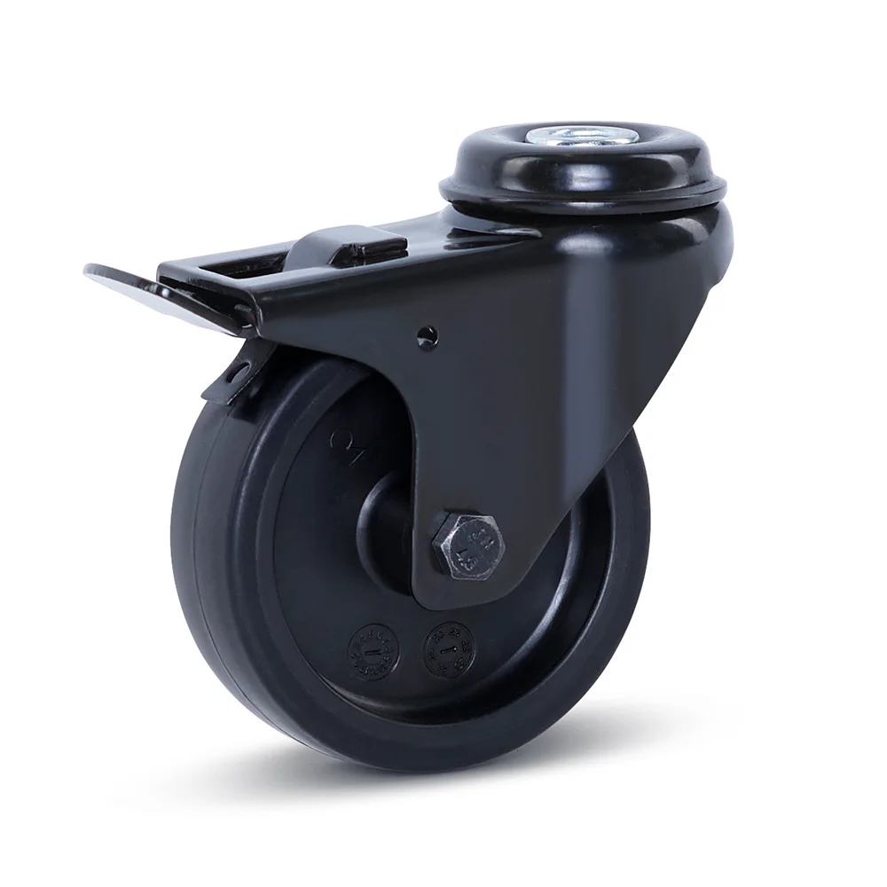 Cette roulette pivotante avec frein est dotée d'un trou central, ce qui permet de la fixer facilement à l'aide d'un boulon ou d'un extenseur.