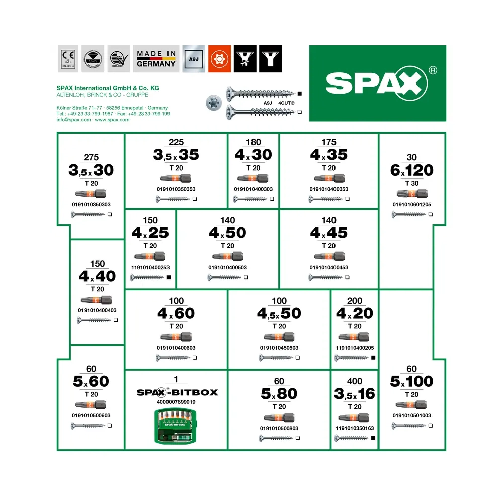 Spax - Vis - Torx - L-BOXX - WIROX - Boîte d'assortiment (2,445 pièces)